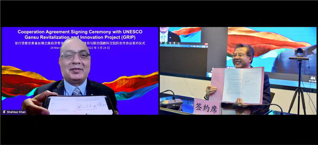 與創(chuàng)新項目與聯(lián)合國教科文組織技術(shù)援助合作協(xié)議簽約儀式,旨在運用甘肅文化和創(chuàng)意資源推進(jìn)文化遺產(chǎn)保護(hù)傳承與創(chuàng)新發(fā)展。