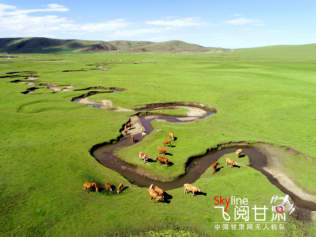 盛夏,是岷縣狼渡灘濕地草原一年中最好的時節(jié),這里天藍(lán)水清,牛肥馬壯,山花爛漫,像是鑲嵌在大地上的一顆綠色明珠,九曲十八彎的狼渡溪流蜿蜒其中,美不勝收。