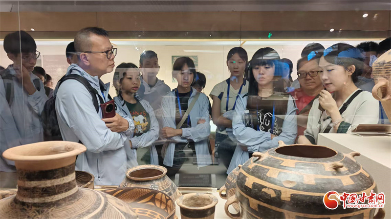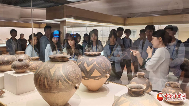7月24日上午,“同心筑夢(mèng)”2025年澳門青少年甘肅行來到甘肅省博物館,來自澳門培正中學(xué)等7所中學(xué)的30名師生依次參觀了“甘肅古生物化石”“甘肅彩陶”“絲綢之路”三大常設(shè)展覽,在“穿越時(shí)空”的沉浸式體驗(yàn)中感受黃河文化的厚重與絲路精神的多彩,完成了一次跨越億萬(wàn)年、縱覽文明史的深度研學(xué)之旅。