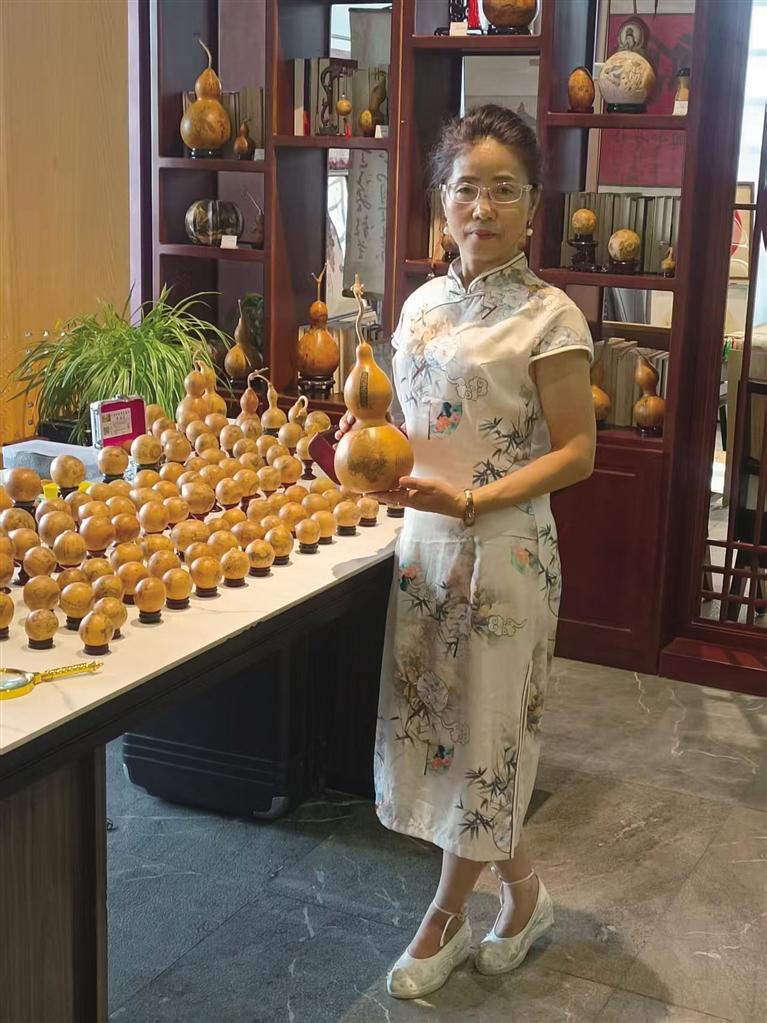 “我啊,從小就是泡在雕刻聲里長大的。”談起與葫蘆雕刻的緣分,齊鴻芬眼中漾起溫潤的光。父親與兄長手中刻刀與葫蘆輕觸的沙沙聲,是她童年最熟悉的旋律。耳濡目染間,方寸葫蘆上的奇妙世界,早已在年幼的心田種下藝術的種子,從此與刻刀、葫蘆結下不解之緣。