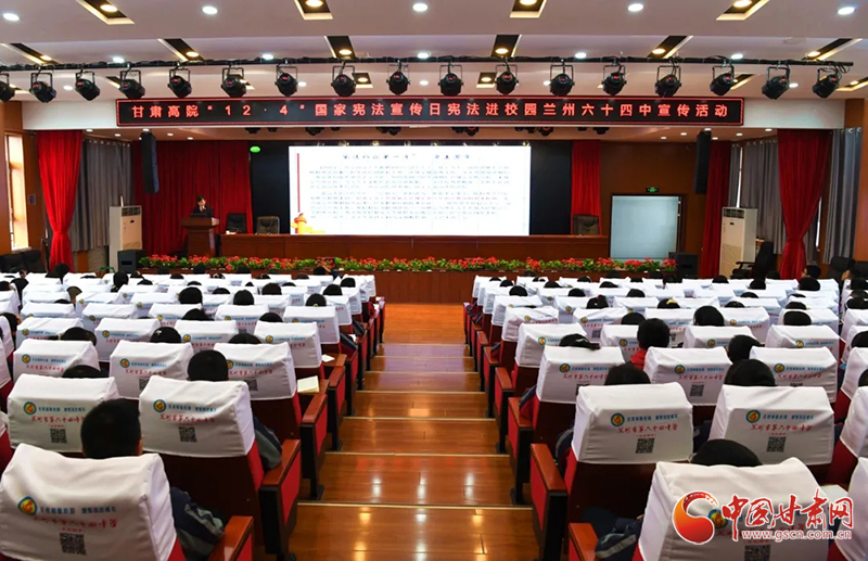 中國(guó)甘肅網(wǎng)12月4日訊(本網(wǎng)記者 李紅軍)12月4日是第七個(gè)“國(guó)家憲法日”。今天下午,甘肅省法院少年法庭的法官走進(jìn)蘭州市第六十四中學(xué),開(kāi)展以“深入學(xué)習(xí)宣傳習(xí)近平法治思想、大力弘揚(yáng)憲法精神”為主題的憲法進(jìn)校園宣傳活動(dòng)。該校300余名師生代表在學(xué)術(shù)報(bào)告廳聆聽(tīng)了宣講報(bào)告,兩名基層法院人民陪審員應(yīng)邀參加了活動(dòng)。
