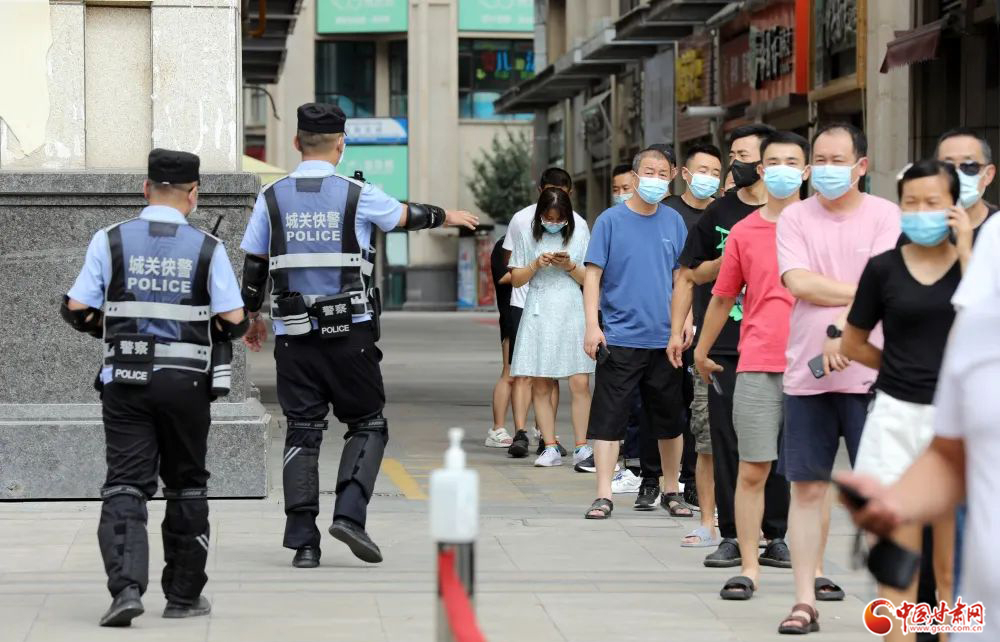 七里河分局龔家灣派出所民警在疫情防控第一線,開展現(xiàn)場秩序維護工作。七里河分局 馬興龍/攝