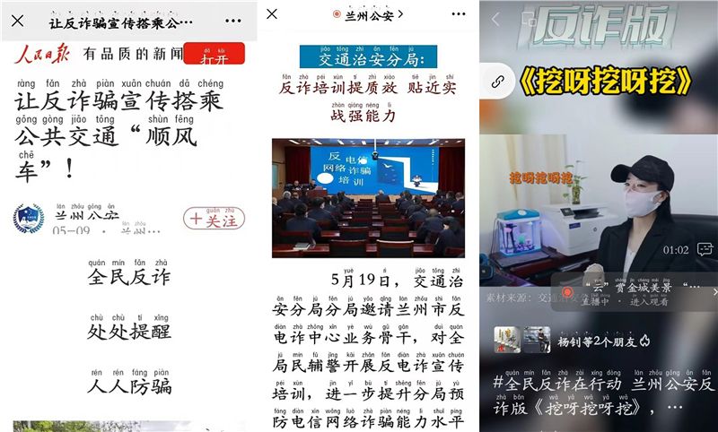 反電詐宣傳專班利用多媒體平臺錄制反電詐版“挖呀挖”,在各媒介平臺進(jìn)行了展播,廣大民輔警實時瀏覽并積極轉(zhuǎn)發(fā)。同時,在中央及省市媒體廣泛刊發(fā)“五一”小長假反詐宣傳不放假、讓反詐騙宣傳搭乘公共交通“順風(fēng)車”、全警參與、協(xié)同互動,讓蘭州市公安局交通治安分局防范電信網(wǎng)絡(luò)詐騙宣傳工作再發(fā)力。