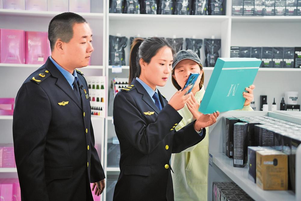 3月12日,在“3·15”國際消費者權益日來臨之際,蘭州市市場監(jiān)督管理局配合甘肅省藥品監(jiān)督管理局對化妝品批發(fā)市場進行檢查,指導企業(yè)規(guī)范經(jīng)營,維護消費者權益。新甘肅·甘肅法治報記者王輝攝