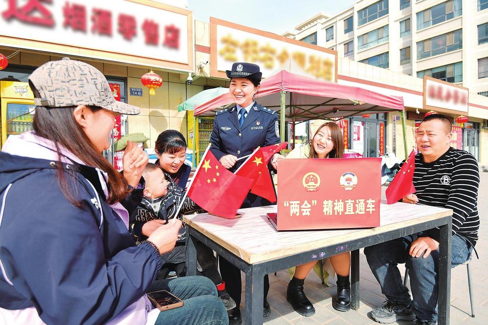3月12日,臨澤縣公安局工業(yè)開發(fā)區(qū)派出所民警走街入戶,與群眾共同學(xué)習(xí)全國(guó)兩會(huì)精神。新甘肅·甘肅法治報(bào)通訊員安學(xué)海攝
