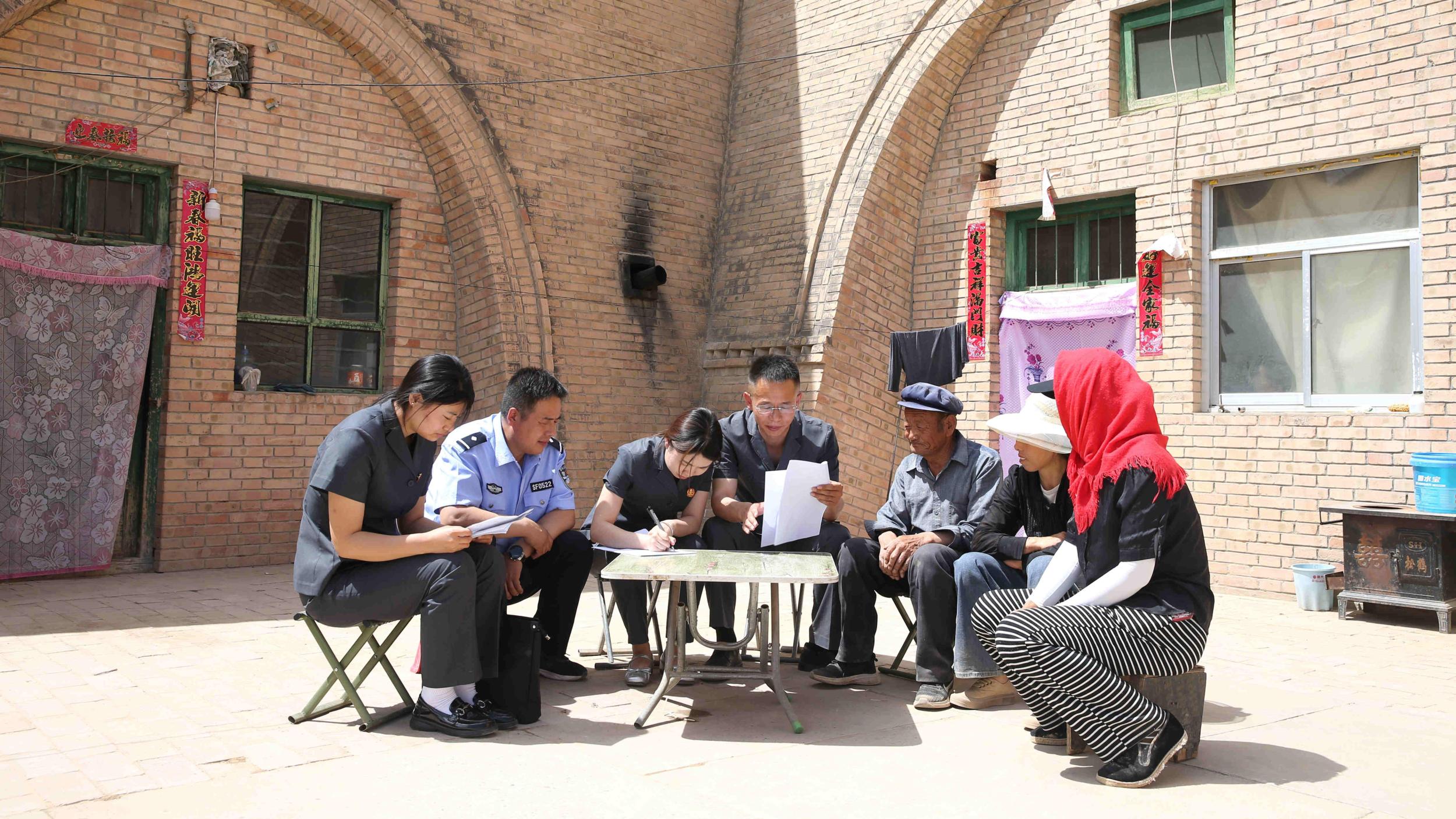 人民法庭法官走進(jìn)農(nóng)戶院落調(diào)處矛盾糾紛(慶陽(yáng)市中級(jí)人民法院供圖)