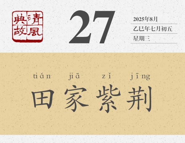 后人即以“田家紫荊”為典,形容兄弟之間同根而生,和睦相處。楊萬里詩《題蕭端虛和樂堂》有這樣的句子:“白頭兄弟不多有,面如橘紅不關(guān)酒。紫荊花開連理枝,孝友未要時(shí)人知。”其中“紫荊花開”即化用此典。兄弟同根同源,沒有理由四分五裂,沒有理由互相爭(zhēng)斗。正如曹植《七步詩》所云:“煮豆燃豆萁,豆在釜中泣。本是同根生,相煎何太急?”常言道:“兄弟齊心,其利斷金。”兄弟之間只要心往一處想,勁往一處使,家庭就能欣欣向榮,興旺發(fā)達(dá)。