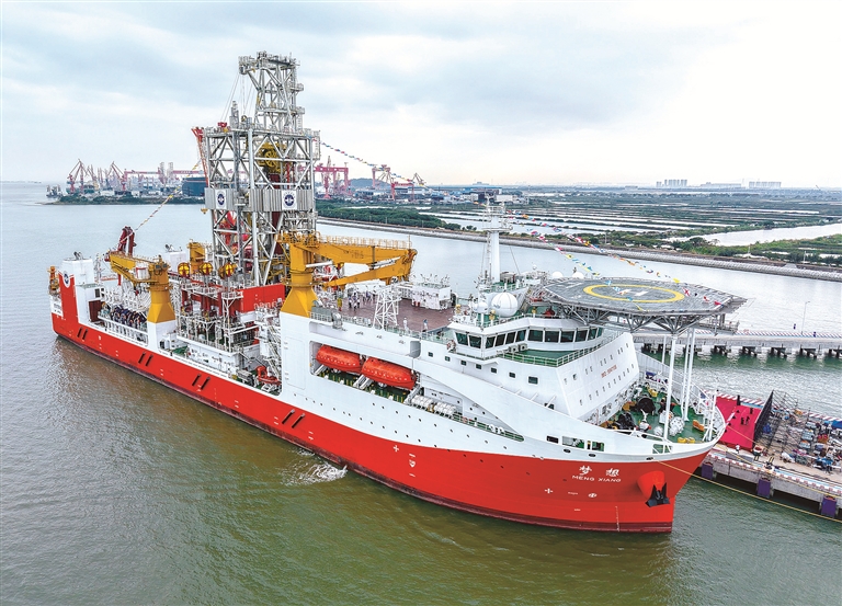 “十四五”時期,我國持續(xù)加強(qiáng)關(guān)鍵核心技術(shù)攻關(guān)和成果應(yīng)用,加快高端裝備、先進(jìn)制造等領(lǐng)域關(guān)鍵技術(shù)攻關(guān),推動傳統(tǒng)產(chǎn)業(yè)向高端化、智能化、綠色化轉(zhuǎn)型。圖為擁有最大11000米的鉆深能力、我國自主設(shè)計建造的首艘大洋鉆探船“夢想”號,該船于“十四五”時期正式入列(資料圖片)。新華社記者 劉大偉 攝