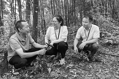 福建省龍巖市紀(jì)委監(jiān)委將深化集體林權(quán)制度改革作為政治監(jiān)督重要內(nèi)容,不斷夯實(shí)高質(zhì)量發(fā)展底色。圖為該市武平縣紀(jì)檢監(jiān)察干部在萬安鎮(zhèn)捷文村林下靈芝種植基地了解有關(guān)情況。曹建橋 攝