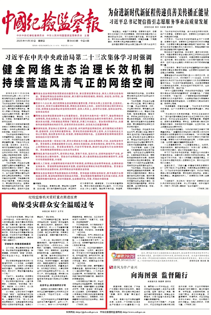 《中國紀(jì)檢監(jiān)察報(bào)》2025年11月30日(第1版)