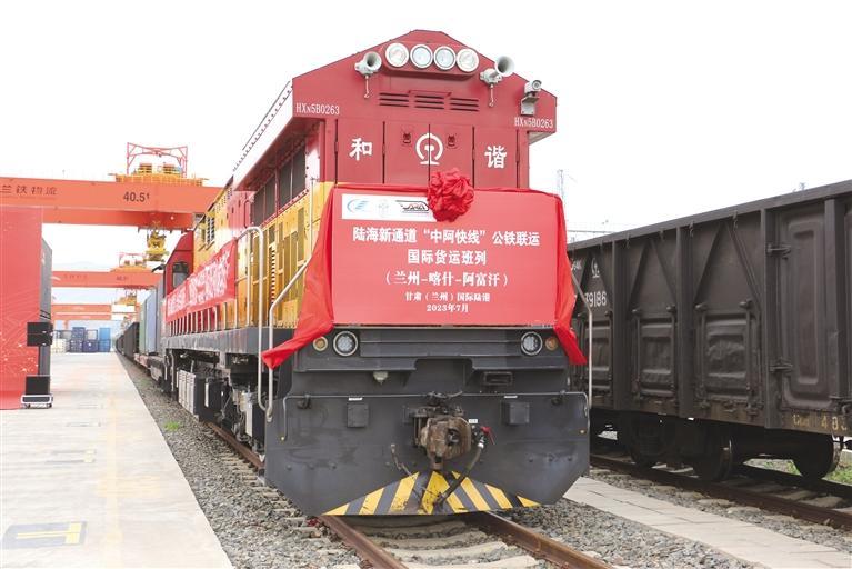 陸海新通道“中阿快線”公鐵聯(lián)運國際貨運班列的開行,對蘭州市打造國家重要的綜合物流樞紐和向西向南開放新高地有重大意義,不僅進一步擴大了陸海新通道在中亞地區(qū)的輻射面及國際影響力,而且體現(xiàn)了陸海新通道聯(lián)動中亞、融入和服務雙循環(huán)的重大作用。