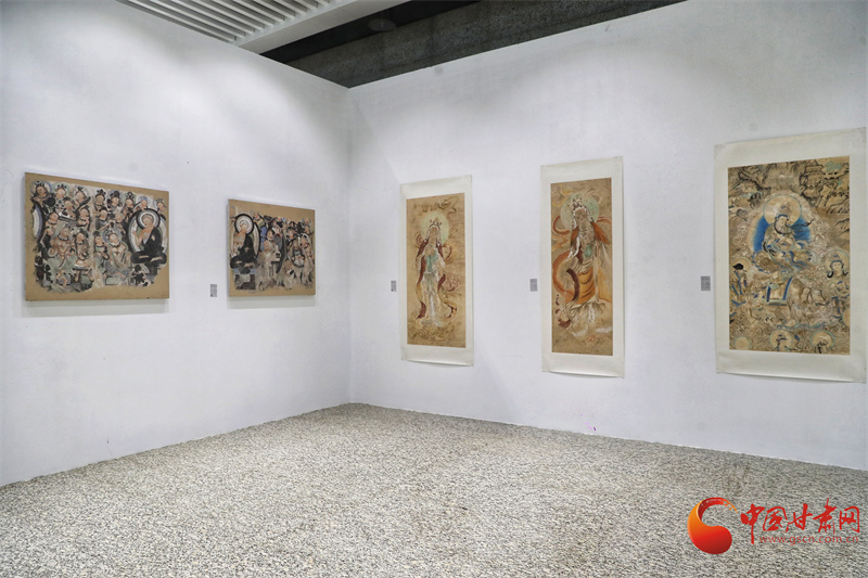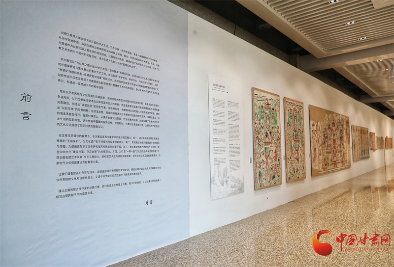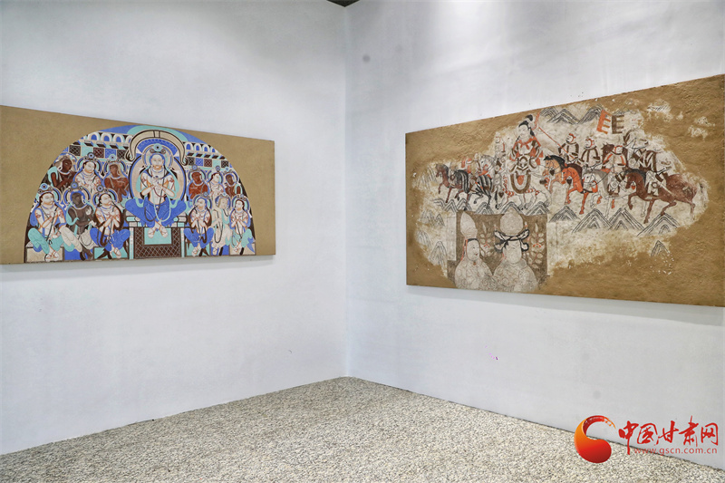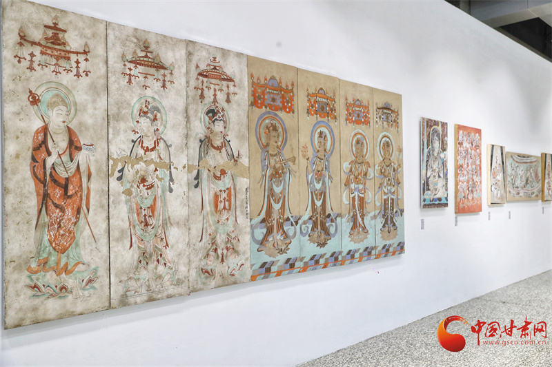 第八屆敦煌文博會(huì)“絲路華彩·盛世華章——敦煌及絲路沿線地區(qū)石窟寺壁畫藝術(shù)傳播與展示”專展,西北師范大學(xué)敦煌學(xué)院馬寶團(tuán)隊(duì)帶來了絲路沿線34個(gè)石窟寺壁畫臨摹作品,以及流失海外的壁畫精品臨摹作品,系統(tǒng)梳理了以河西走廊石窟群為代表的絲綢之路沿線石窟壁畫藝術(shù),讓全世界的觀眾可以更直接參觀熠熠生輝的絲綢之路經(jīng)典壁畫。