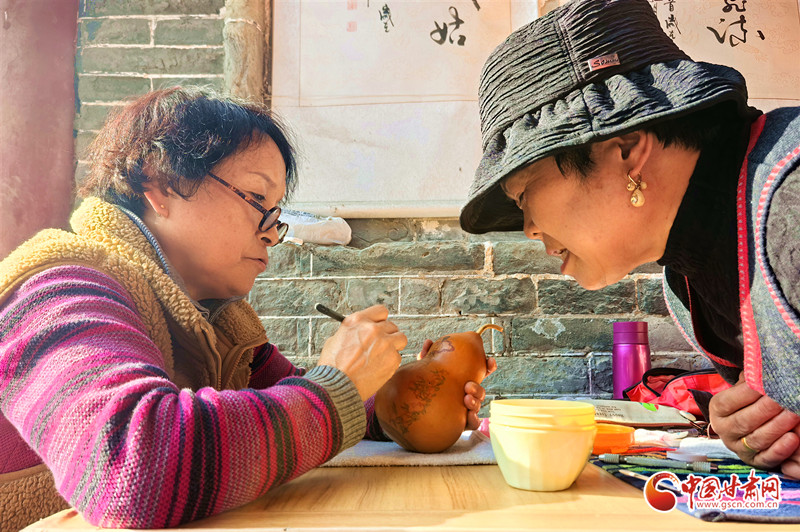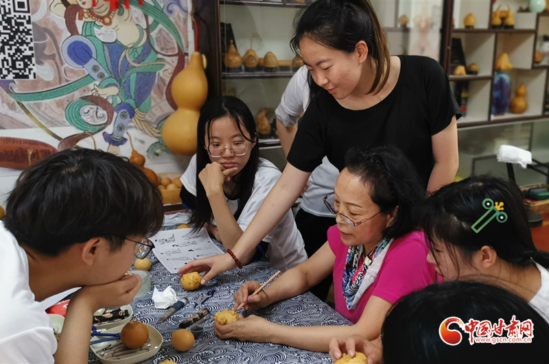 她還走進蘭州開放大學(xué),為熱愛刻葫蘆的老年人手把手地傳授技藝,耐心細致地指導(dǎo)他們?nèi)绾卧谛⌒〉暮J上刻畫出精美的圖案。