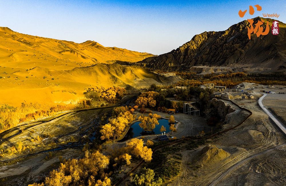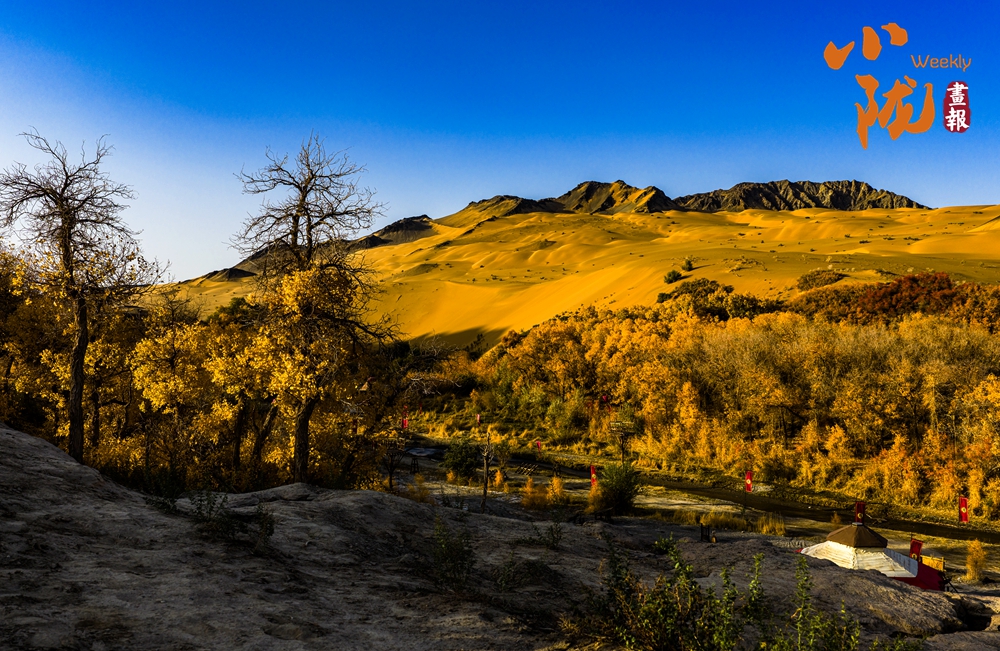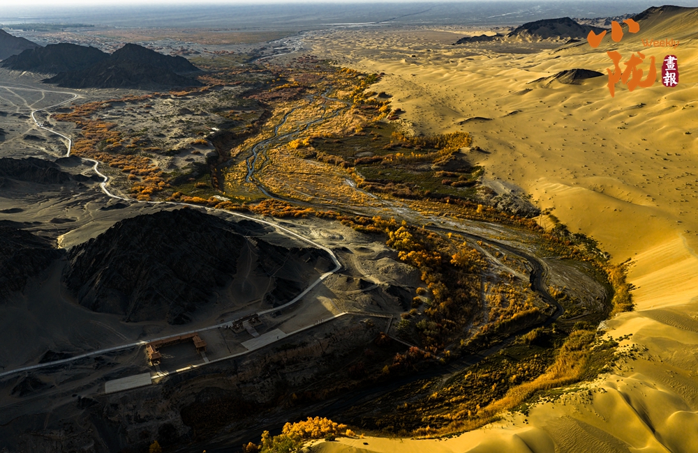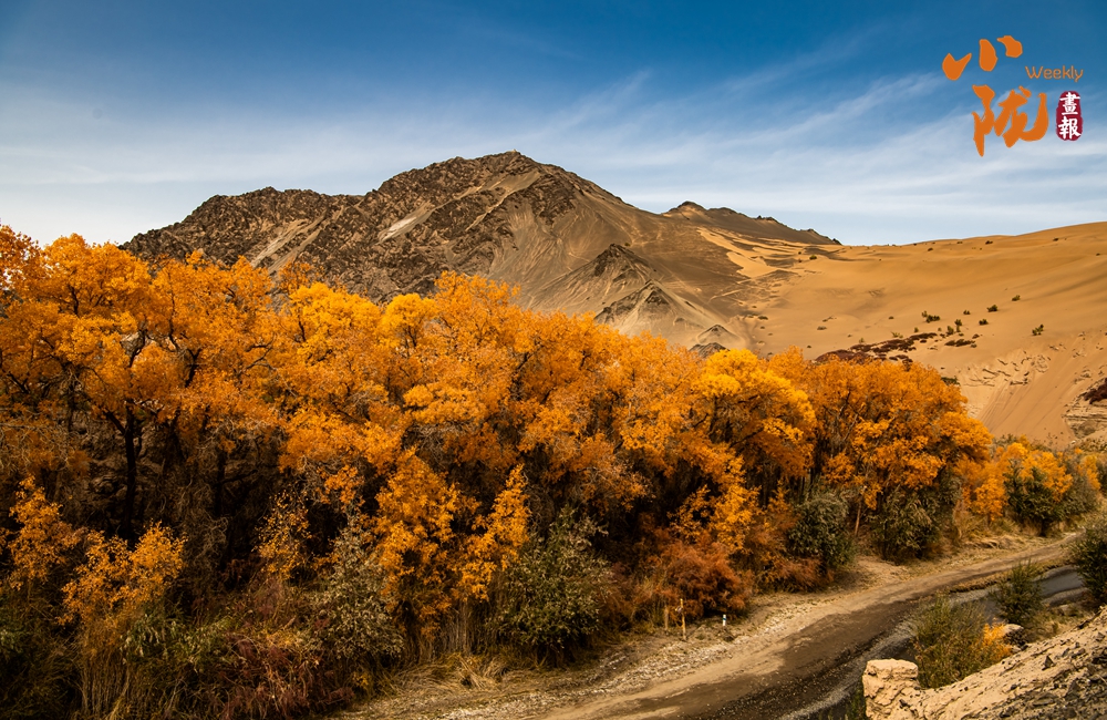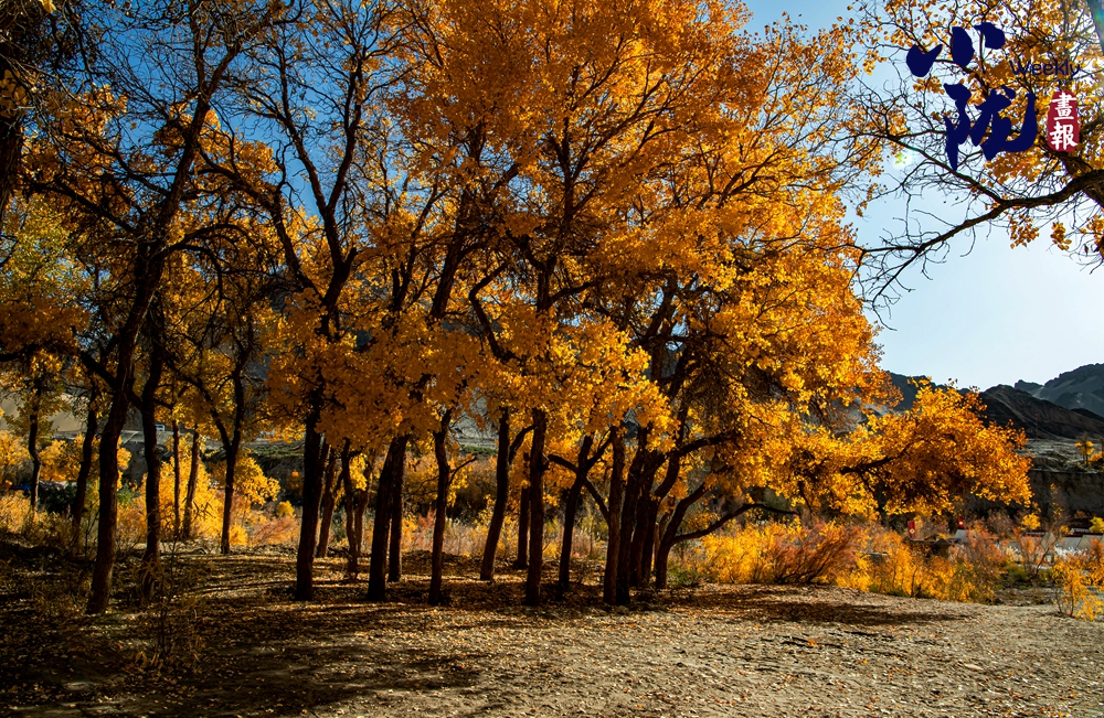 每年10月下旬,是多壩溝胡楊峽胡楊的最佳觀賞期。金黃色的胡楊,與周邊沙山、溪流交織成色彩斑斕的景觀,形成荒漠地帶獨特的生態(tài)畫卷。