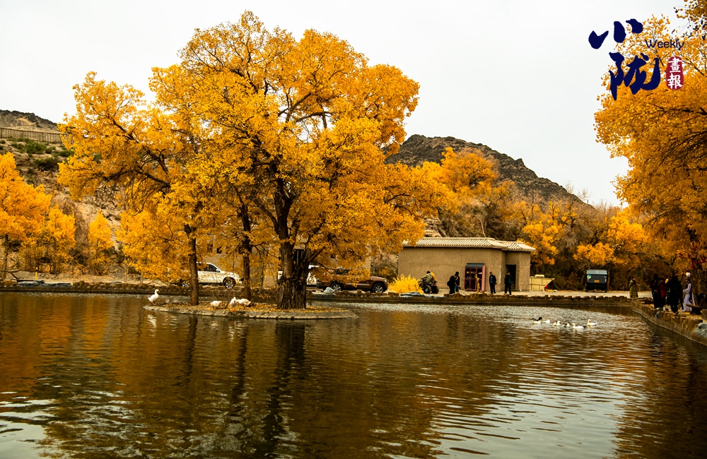 四周被連綿起伏的沙丘環(huán)繞,湖水如鏡,美麗的胡楊倒映在水中,與湖中游弋的天鵝、岸上佇立的小木屋,完美結(jié)合在一起,把整個戈壁沙漠點綴得生氣蓬勃。