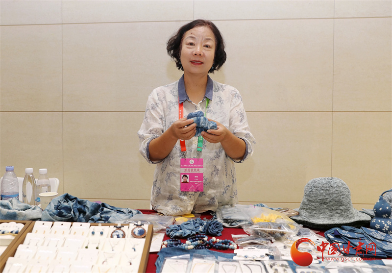 在第八屆進博會的現場,甘肅館以其獨特的人文底蘊吸引了眾多目光。展館內,弧形山脈造型的背景,仿佛展現著甘肅的壯美風光,而慶陽香包、敦煌絲巾等精美展品,則如璀璨明珠,訴說著甘肅的文化魅力。就在這其中,來自平涼的古法藍染技藝展臺格外引人注目,一件件藍染作品散發(fā)著獨特的草本氣息,向世界展示著非遺的獨特魅力,而這些作品的創(chuàng)作者,正是平涼藍染技藝的市級非遺傳承人李梅。