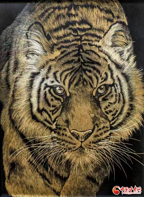 對(duì)張兆武來說,做鍥金畫從來不是“照貓畫虎”。他琢磨傳統(tǒng)書畫的筆墨、篆刻的力道,慢慢攢出了自己的一套刀法;創(chuàng)作時(shí),心里裝的也全是敦煌——從莫高窟第112窟里“反彈琵琶”的靈動(dòng)舞姿,到傳說中“九色神鹿”的溫潤模樣,都成了他刻刀下的主角。他刻出的飛天,飄帶像帶著風(fēng);刻出的菩薩,眉眼間透著莊重;金屬的光澤在畫面上流轉(zhuǎn),明明是靜態(tài)的畫,卻像在講一段活的敦煌故事。“不用多說什么,看過的人能懂這份美。”張兆武說的這份“懂”,恰恰打破了文化和語言的距離,讓東方的古老美學(xué),和全世界的現(xiàn)代審美碰出了共鳴。