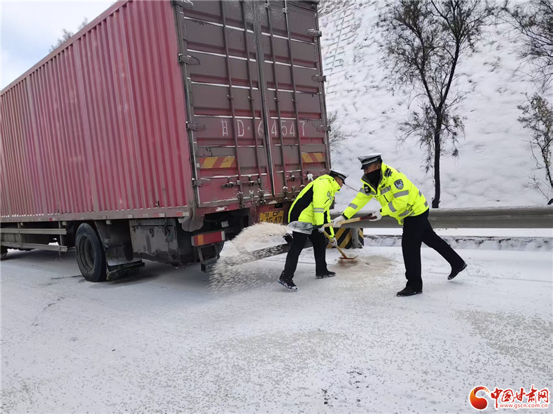 為應對降雪影響,蘭州公安交管部門科學調配警力,在城區(qū)主次干道、國省道沿線及重點積雪結冰路段布設執(zhí)勤點位。針對解放門立交橋等橋梁隧道、長大下坡關鍵點位,提前預置融雪劑,聯(lián)合市政養(yǎng)護部門開展“機械除雪+人工清掃”作業(yè),確保重點路段“見底露面”。