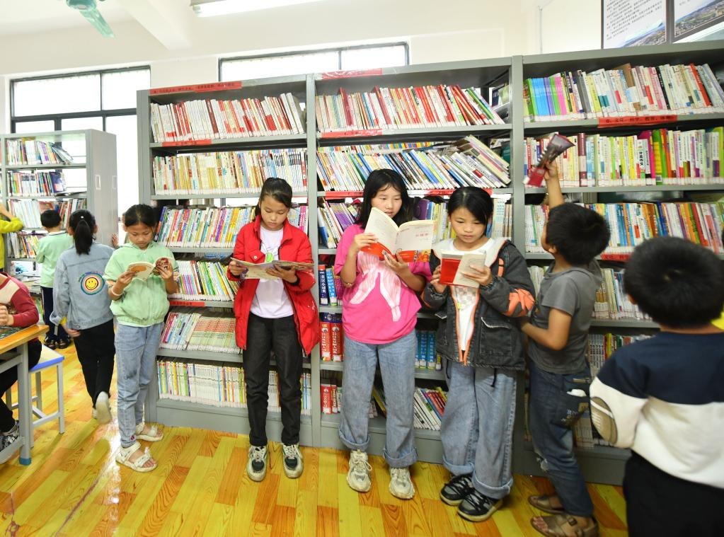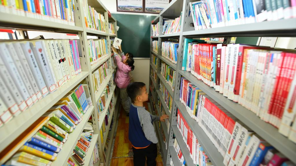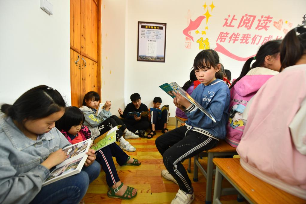 骨龍村小學(xué)學(xué)生在圖書(shū)室閱讀(5月25日攝)。