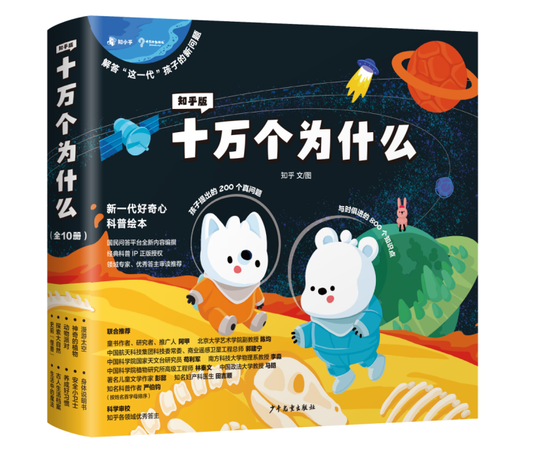 不是所有的科普讀物,都能叫《十萬個(gè)為什么》。1961年至今,《十萬個(gè)為什么》累計(jì)發(fā)行量近2億冊(cè),是至今仍未被超越的現(xiàn)象級(jí)科普?qǐng)D書。這套書在普及和傳播科學(xué)知識(shí)方面,發(fā)揮了非常積極的作用,影響了中國幾代青少年,堪稱是新中國影響力最大的青少年科學(xué)啟蒙讀物。作為國民級(jí)科普經(jīng)典,《十萬個(gè)為什么》誕生至今已經(jīng)60多年。盡管已經(jīng)有了之前版本的《十萬個(gè)為什么》,但是時(shí)代是不斷進(jìn)步的,特別是進(jìn)入數(shù)碼時(shí)代以后,孩子們比以往的所有時(shí)代,擁有著更多的信息和知識(shí),腦袋瓜里也萌發(fā)著更新的問題和疑惑。他們發(fā)出的越來越多“超綱”問題,是以前的課本、科普書上沒有的,也讓父母?jìng)兘?jīng)常面對(duì)“不知如何作答”的情況。新的“為什么”,需要新的解答。在少兒經(jīng)典科普《十萬個(gè)為什么》出版60周年之際,知乎攜手上海少年兒童出版社,收集當(dāng)代孩子的真問題,邀請(qǐng)各領(lǐng)域機(jī)構(gòu)和專家為孩子們寫下新答案,推出了全新的知乎版《十萬個(gè)為什么》,盡量讓孩子們的問題都有答案。