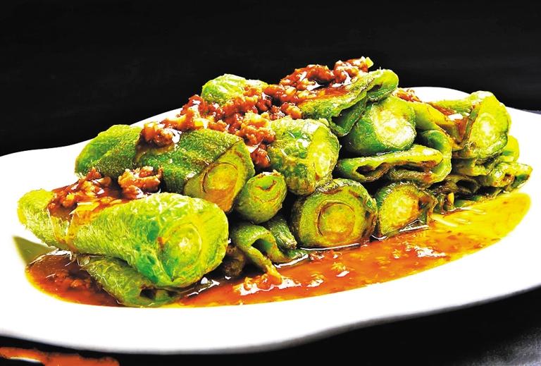 虎皮辣椒的做法也很簡單,將辣椒放入鍋中,加入大蒜粉、姜末、豆豉和豆瓣醬,用干煸的方法煸制味道,直到辣椒表面出現(xiàn)虎皮。之后,在鍋中加入適量的鹽、味精、胡椒和白糖,出鍋前加入適量的醋調(diào)味。折橋?yàn)侈r(nóng)家樂的虎皮辣椒表皮油光閃亮,爆起的虎紋相當(dāng)美觀,吃起來酥脆微辣,是極好的下飯菜。