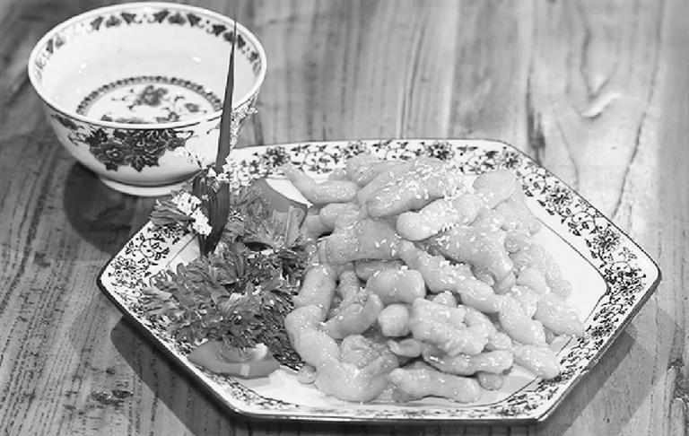 這道菜一端上來,完全是糖醋里脊的扮相,實際上它是一道甜甜蜜蜜的面食。馉子,這個詞我也是第一次見,翻閱詞條,發(fā)現(xiàn)它在古時指的就是一種圓形、有餡、用油煎或水煮的面食。