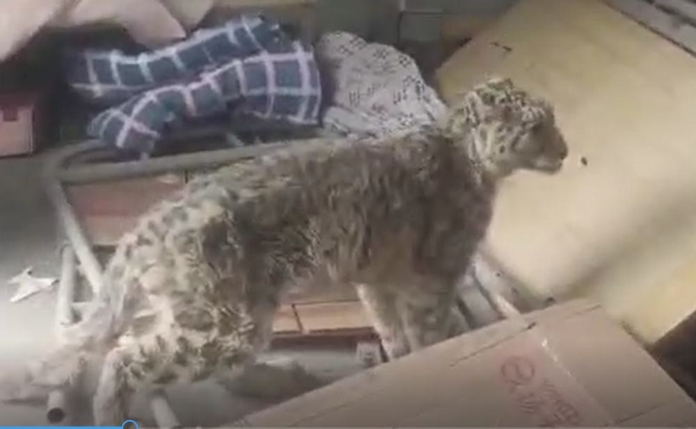 雪豹被困廢舊儲(chǔ)藏室。(大熊貓祁連山國(guó)家公園甘肅省管理局張掖分局供圖)