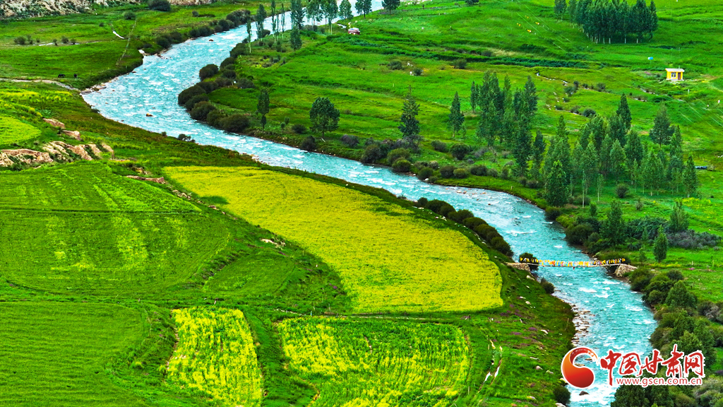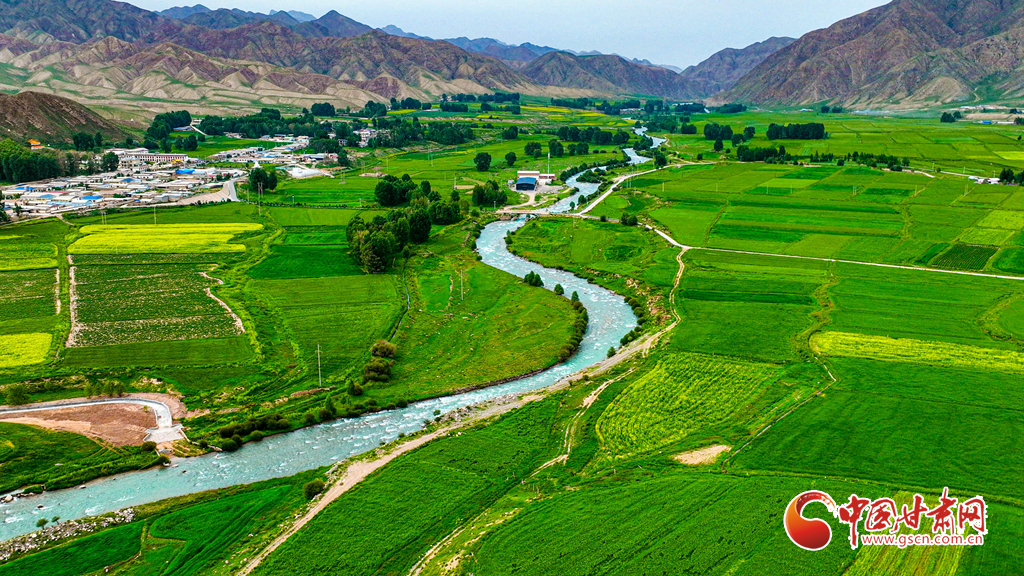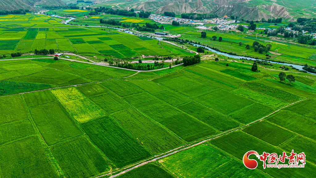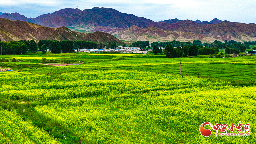 7月14日,一場小雨過后,張掖市肅南裕固族自治縣皇城鎮(zhèn)泱翔片區(qū),萬畝麥田泛黃、油菜花盛開如金。微風(fēng)吹拂,麥浪翻涌花香浮動。遠(yuǎn)眺祁連山巍峨聳立,近觀民居錯落有致,構(gòu)成一幅和諧的畫卷。