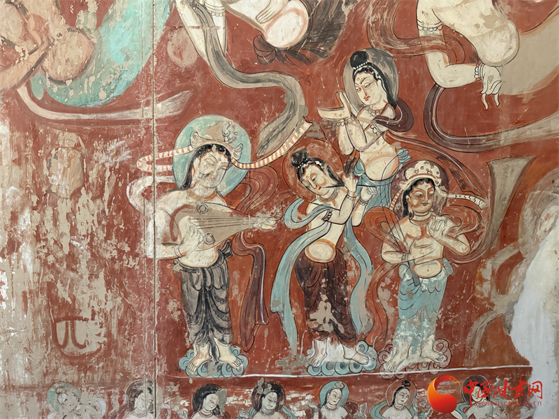 “轉眸流眄綻笑櫻,柔曼恬雅拂妙韻。樂如清泉沁心肺,舞似天仙乘飛云。”敦煌莫高窟第112窟“反彈樂舞”壁畫靜候千年默默講述一段敦煌故事。
