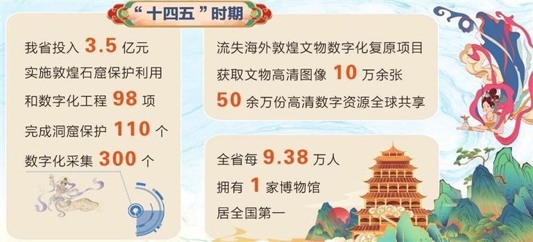 在文物保護(hù)提質(zhì)升級(jí)方面,我省投入3.5億元,實(shí)施敦煌石窟保護(hù)利用和數(shù)字化工程98項(xiàng),完成洞窟保護(hù)110個(gè)、數(shù)字化采集300個(gè),建成全球首個(gè)文物保護(hù)多場(chǎng)耦合實(shí)驗(yàn)室,制定國家和行業(yè)標(biāo)準(zhǔn)27項(xiàng),科研成果服務(wù)16省市及部分共建“一帶一路”國家;流失海外敦煌文物數(shù)字化復(fù)原項(xiàng)目獲取文物高清圖像10萬余張,50余萬份高清數(shù)字資源全球共享;第四次全國文物普查新發(fā)現(xiàn)線索4659條,投入24.26億元實(shí)施900余項(xiàng)重要文保項(xiàng)目;打造河西走廊國家遺產(chǎn)線路,創(chuàng)建嘉峪關(guān)長城國家文物保護(hù)利用示范區(qū),全省文物系統(tǒng)性保護(hù)成效顯著,“中國特色?敦煌經(jīng)驗(yàn)”國際影響力持續(xù)提升。