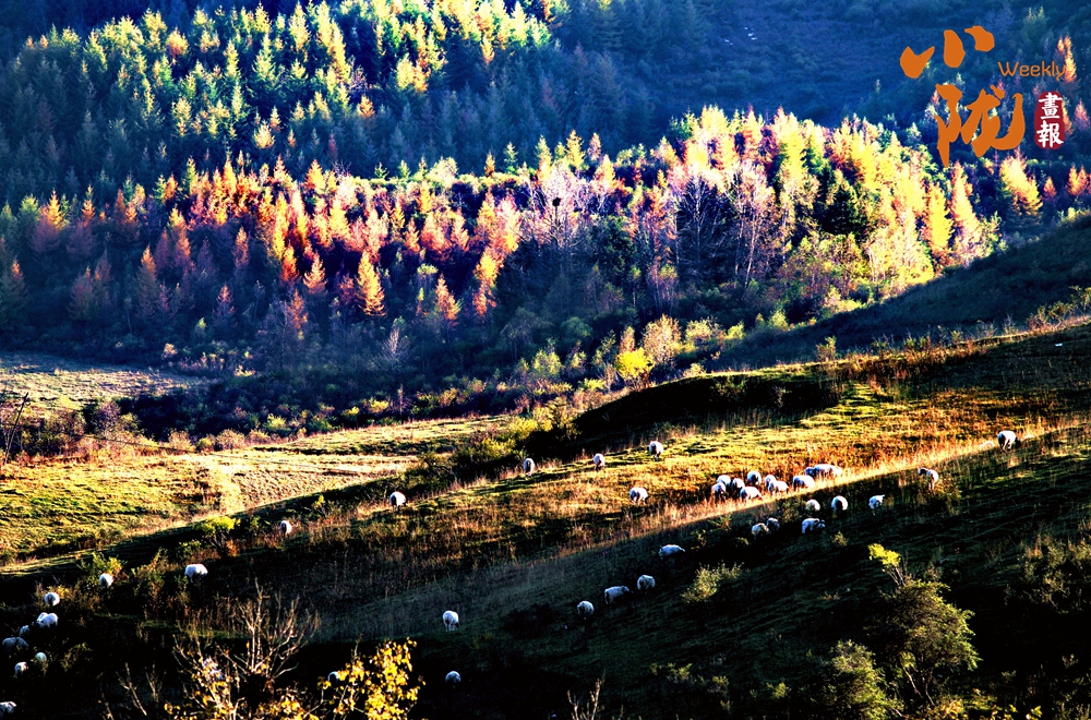 山川被染成一片耀眼的金黃,宛如大地披上了柔軟的絨毯。一群群牛羊散落其中,如同大地寫(xiě)下的詩(shī)句,一行行、一段段,在彩色的大地上書(shū)寫(xiě)著屬于自然的韻律。
