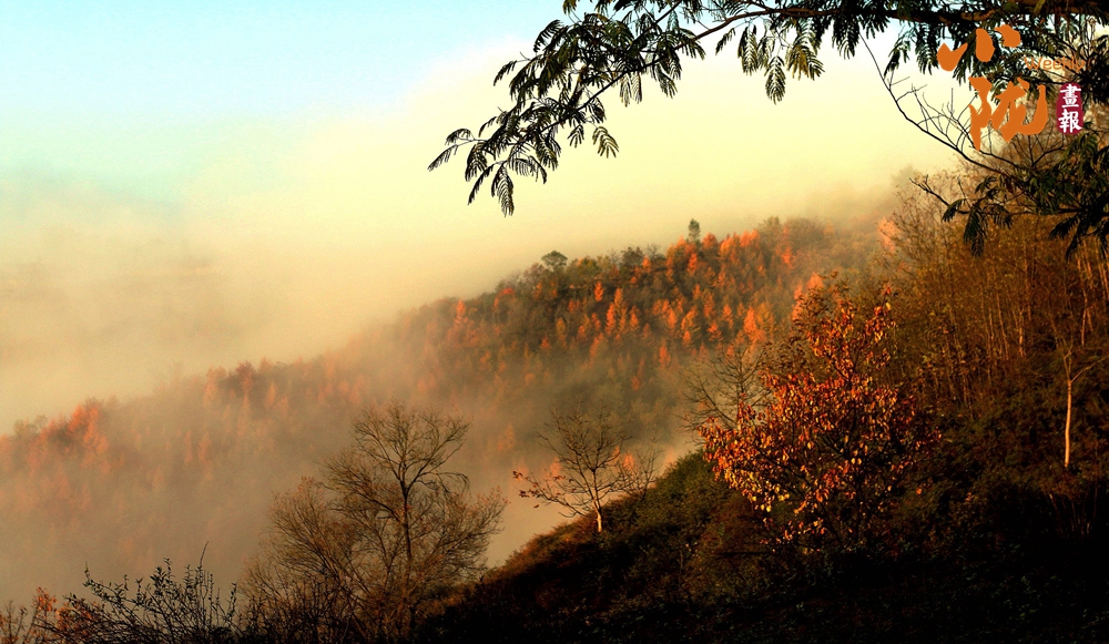 遠(yuǎn)處的樹(shù)木被冬霜精心“染色”,墨綠、淺黃、緋紅層層疊疊,形成鮮明對(duì)比,共同繪成了一幅水彩畫(huà)。