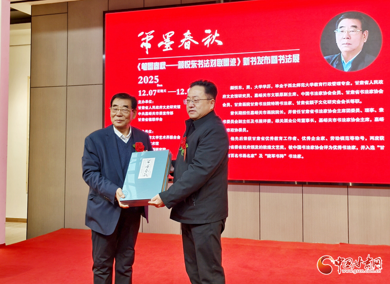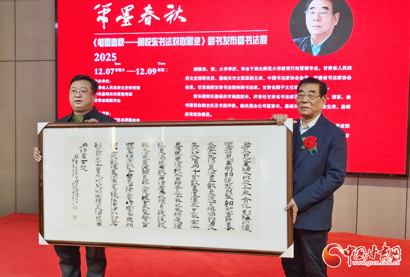 中國甘肅網(wǎng)12月7日訊(西北角·中國甘肅網(wǎng)記者 任磊)12月7日上午,《筆墨春秋—顏悅東書法對(duì)聯(lián)墨跡》新書發(fā)布暨書法展在甘肅省藝術(shù)館啟幕。本次展覽集中呈現(xiàn)顏悅東近年來創(chuàng)作的120幅書法作品,同期發(fā)布的新書收錄楹聯(lián)作品330副,系統(tǒng)呈現(xiàn)了作者在書法領(lǐng)域的藝術(shù)探索與創(chuàng)作成果。